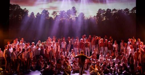 Spectacle avec 170 choristes sur scene de chansons françaises et anglaises avec mise en scène